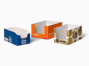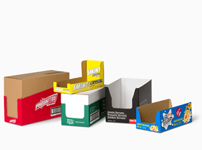 Dual-functionality packaging for products transport and display. Designed for quick and easy placement on store shelves.
